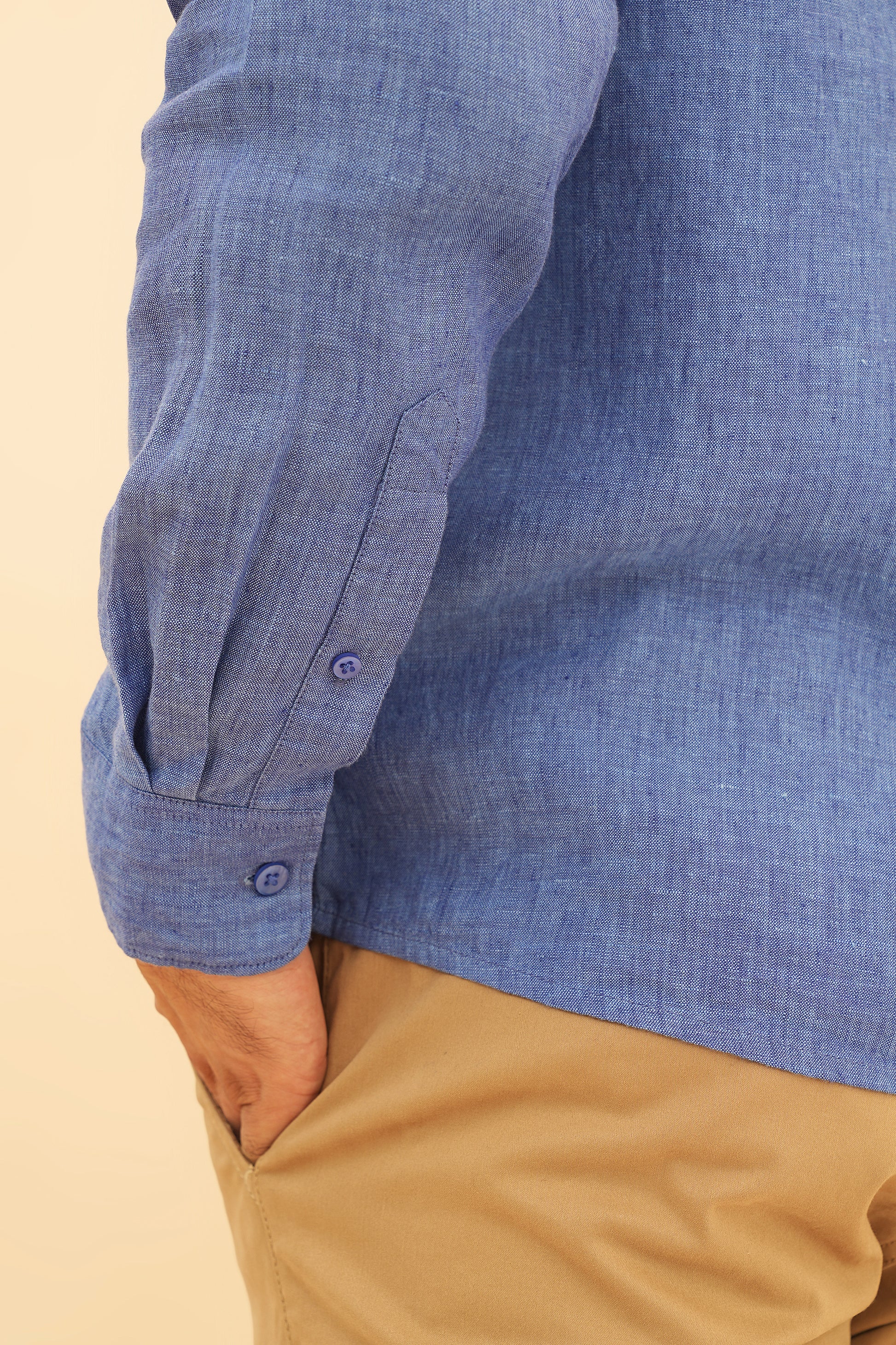Made from flax grown in the cool climates of Europe, our linen is naturally breathable, biodegradable, and low-impact by nature. It keeps you cool in heat, comfortable in humidity, and ages beautifully with every wear. The fabric has been yarn-dyed for that premium linen look.